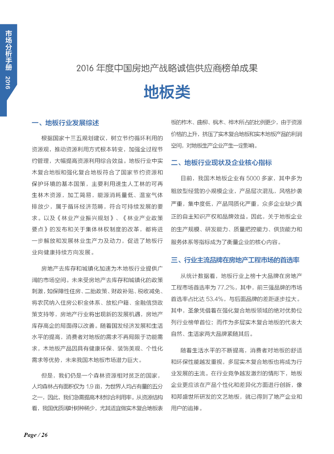 2016中国房地产产业链战略诚信供应商公益榜单市场分析手册