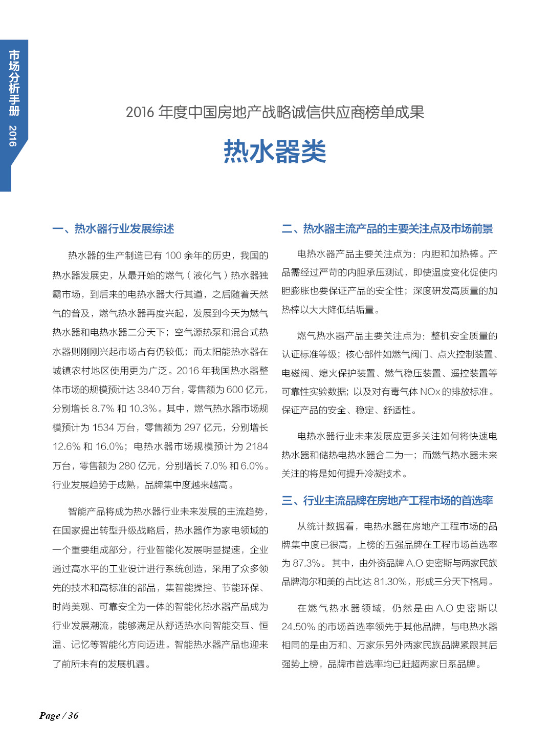 2016中国房地产产业链战略诚信供应商公益榜单市场分析手册