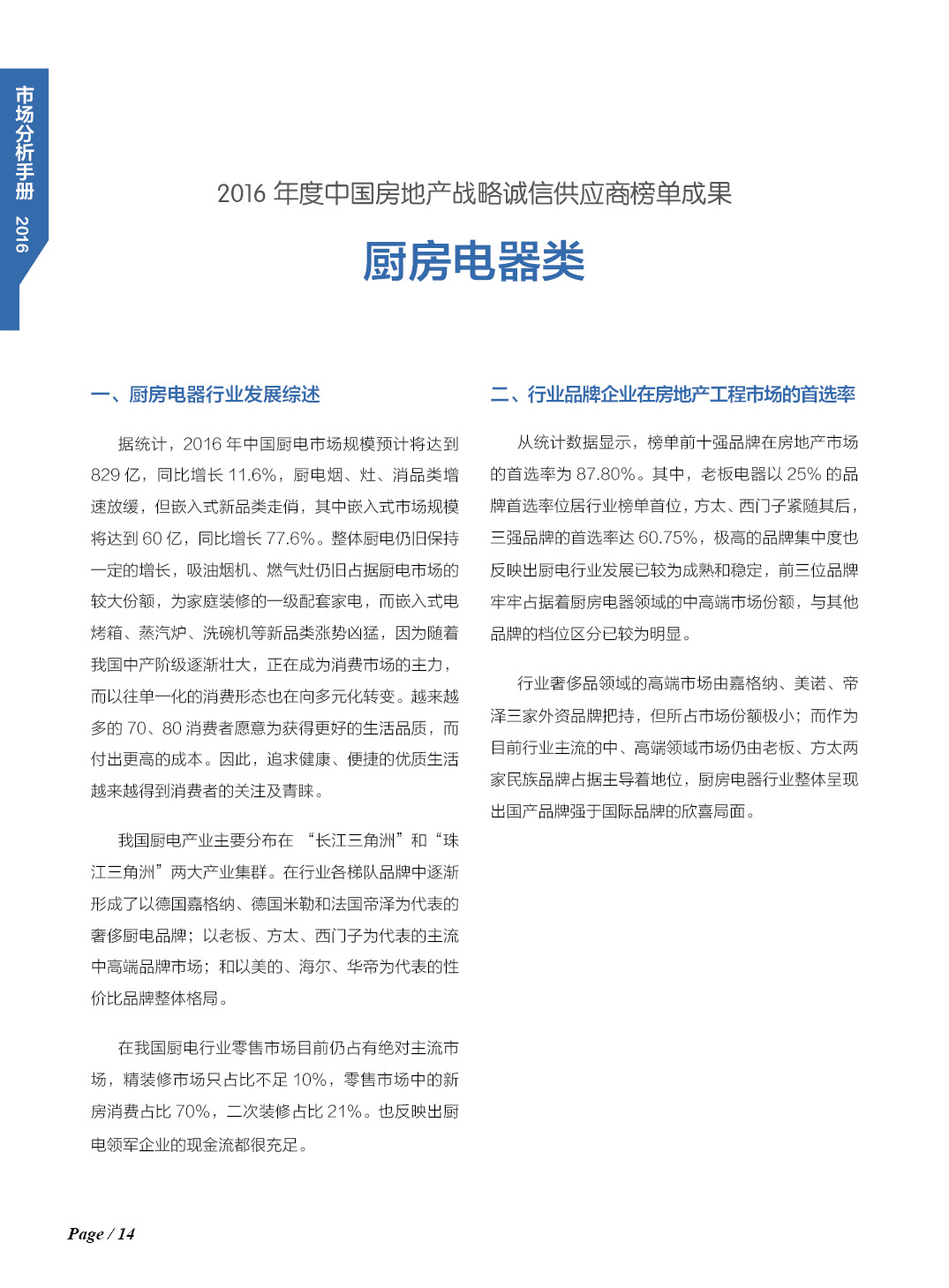 2016中国房地产产业链战略诚信供应商公益榜单市场分析手册