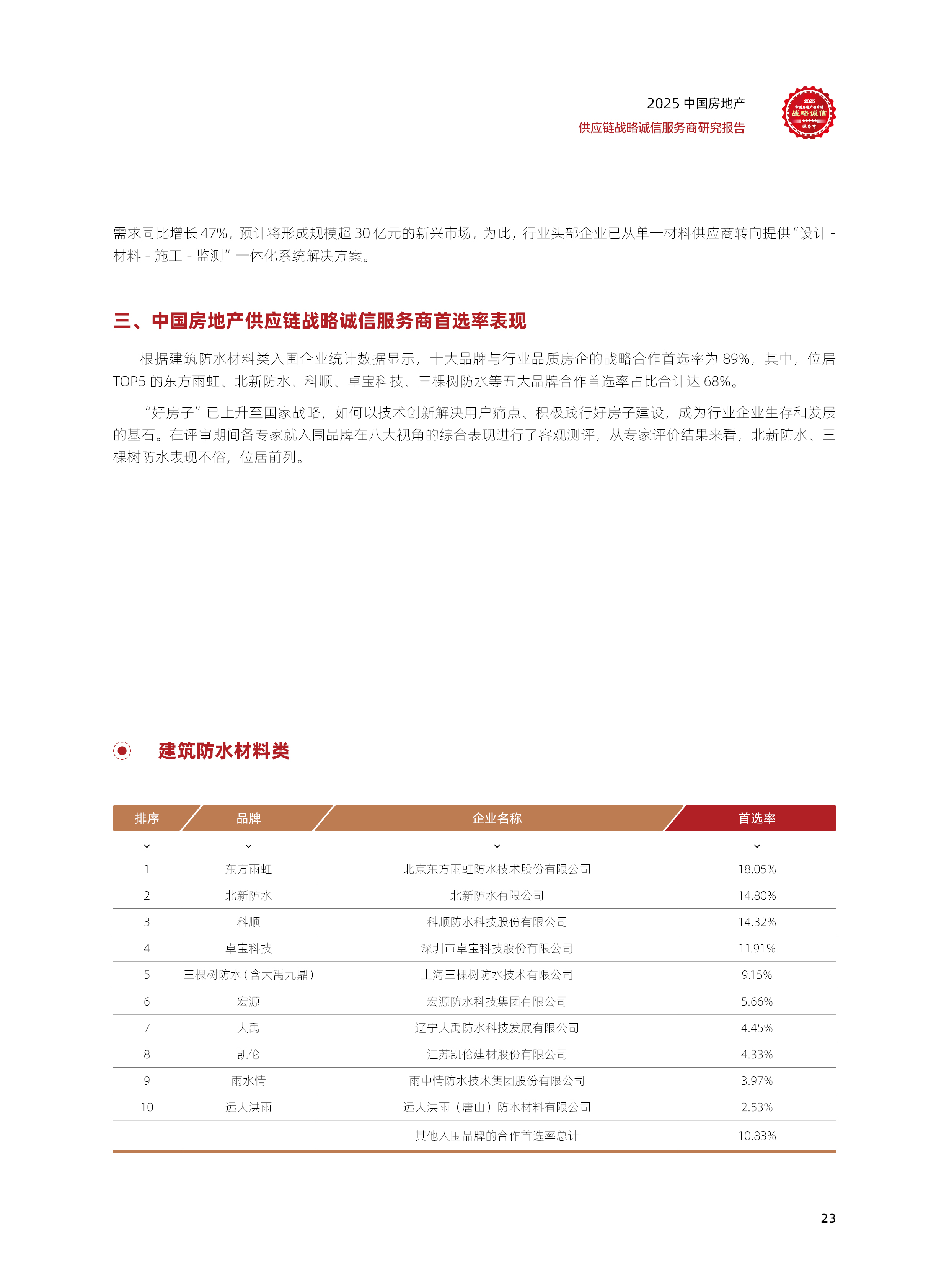 2025中国房地产供应链战略诚信服务商研究报告