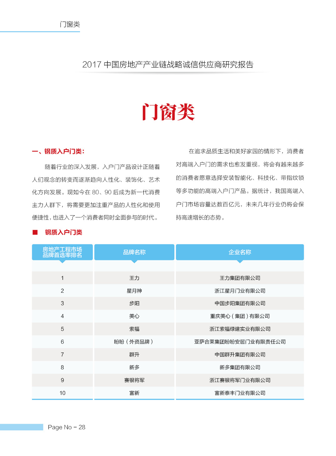2017中国房地产产业链战略诚信供应商研究报告