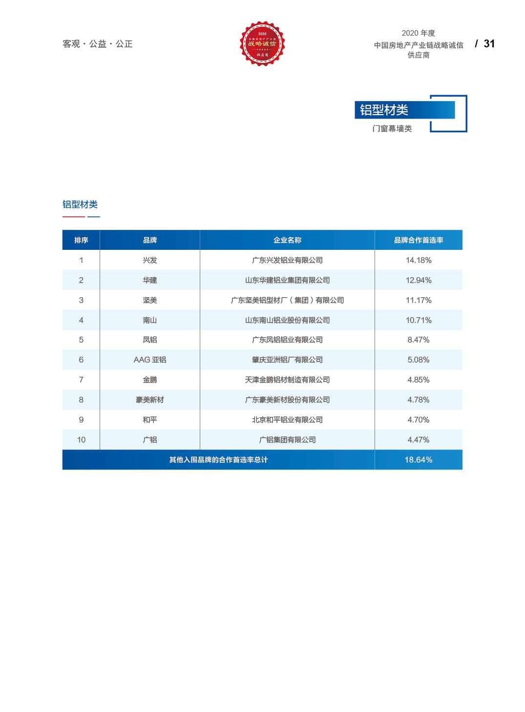 2020中国房地产产业链战略诚信供应商研究报告