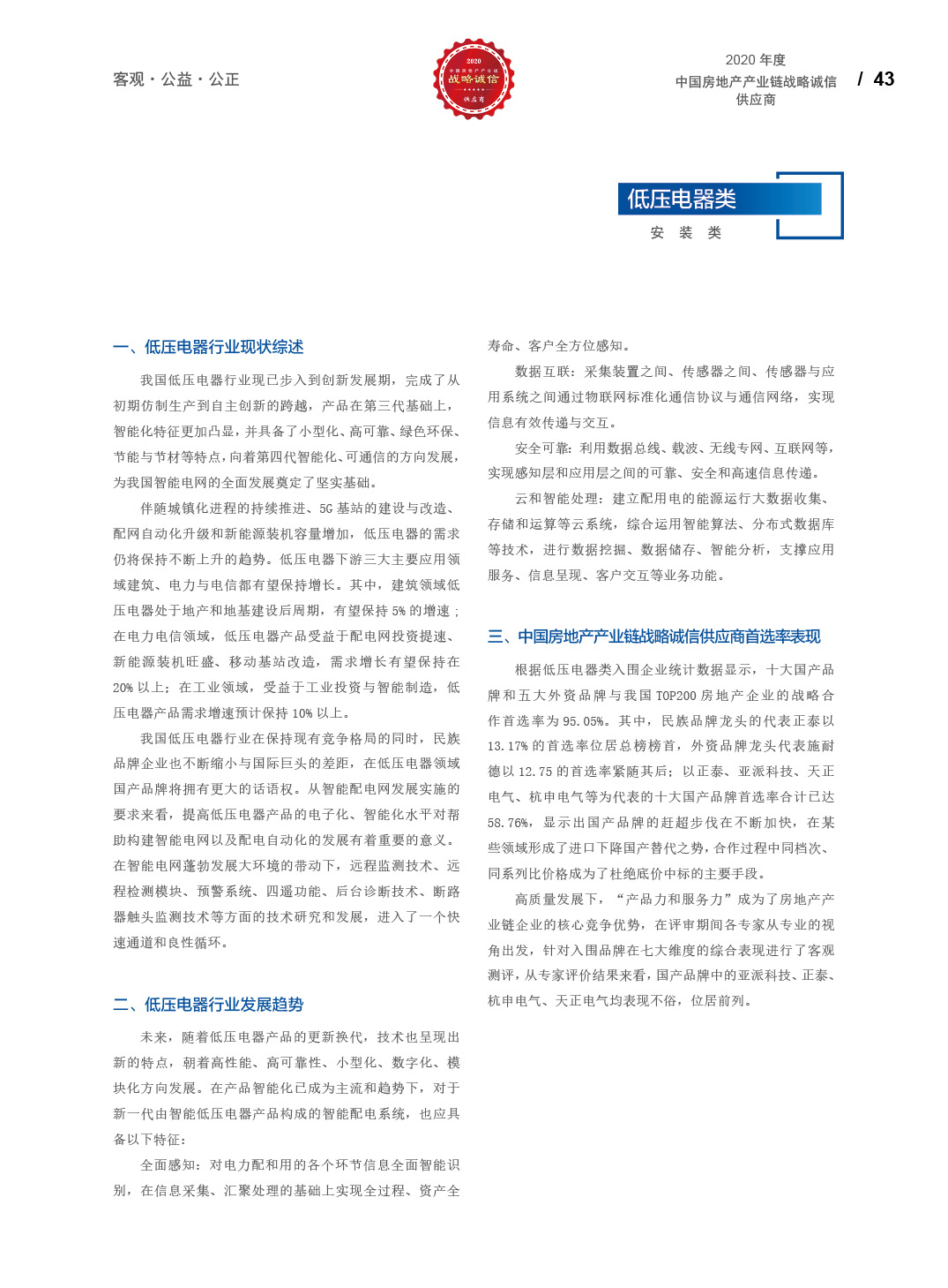 2020中国房地产产业链战略诚信供应商研究报告