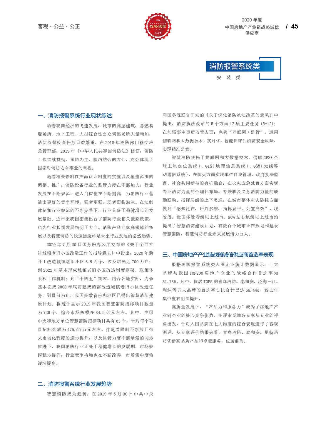 2020中国房地产产业链战略诚信供应商研究报告