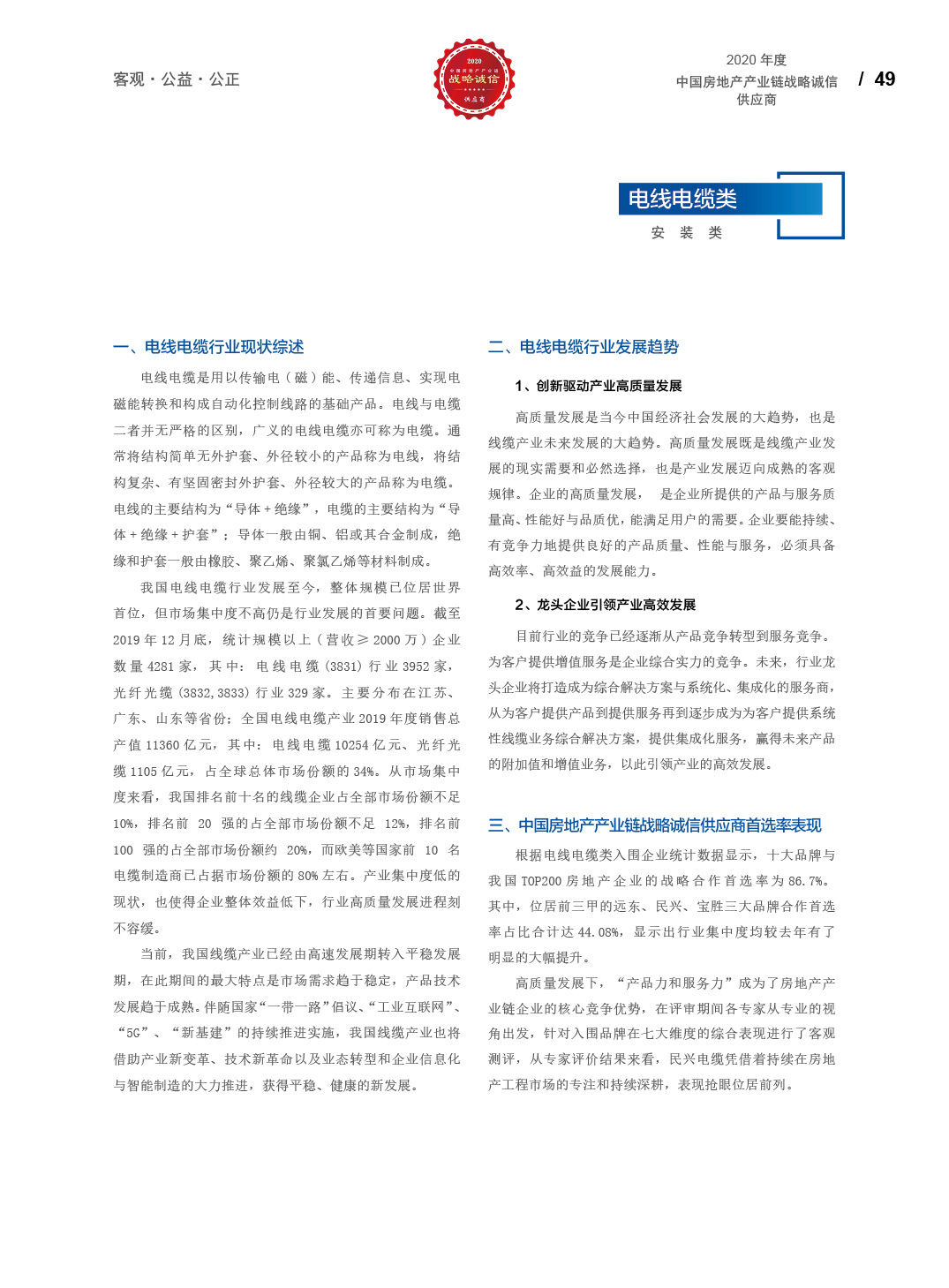 2020中国房地产产业链战略诚信供应商研究报告