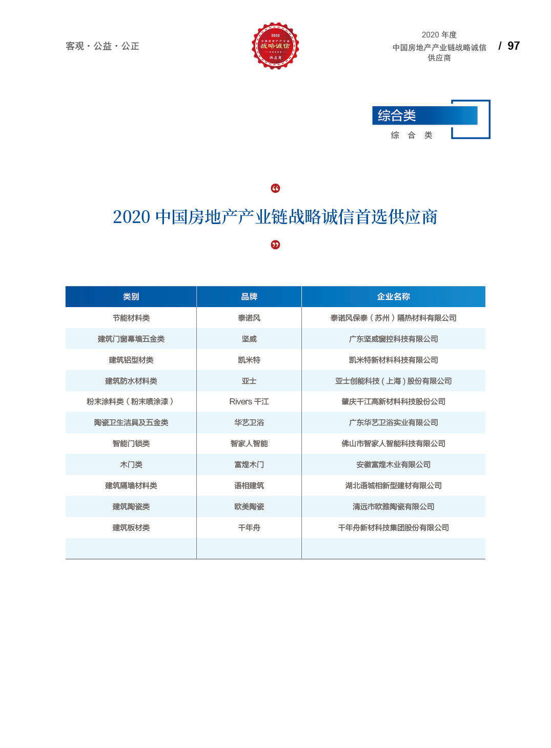 2020中国房地产产业链战略诚信供应商研究报告