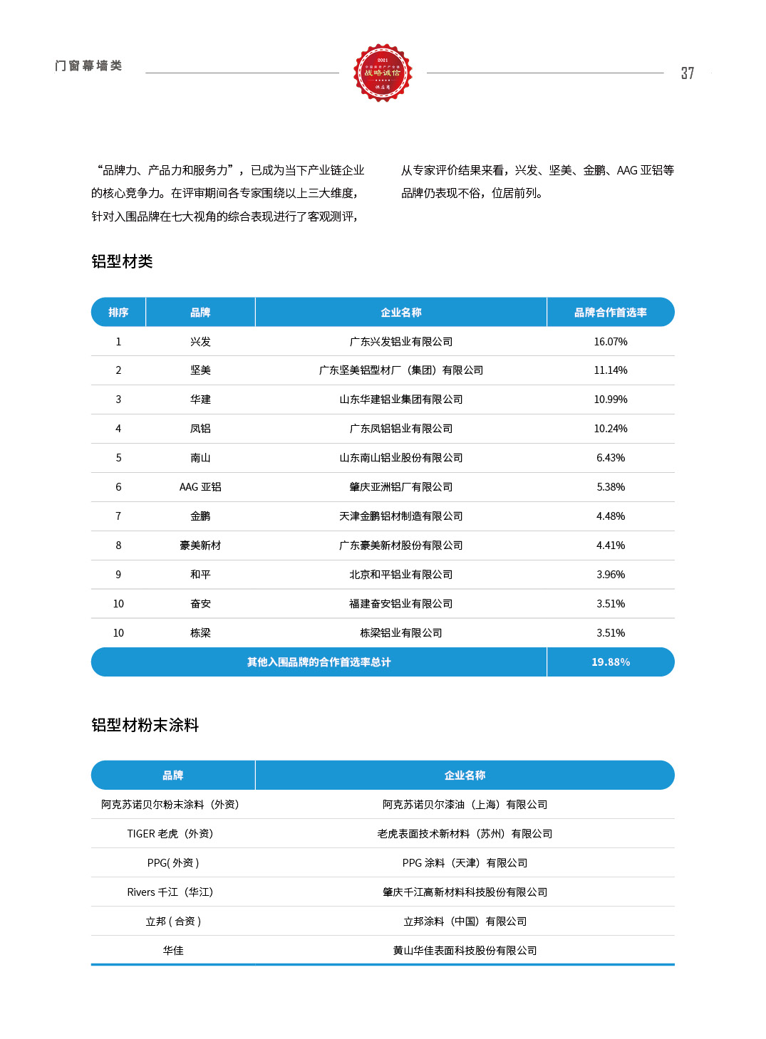 2021中国房地产产业链战略诚信供应商研究报告