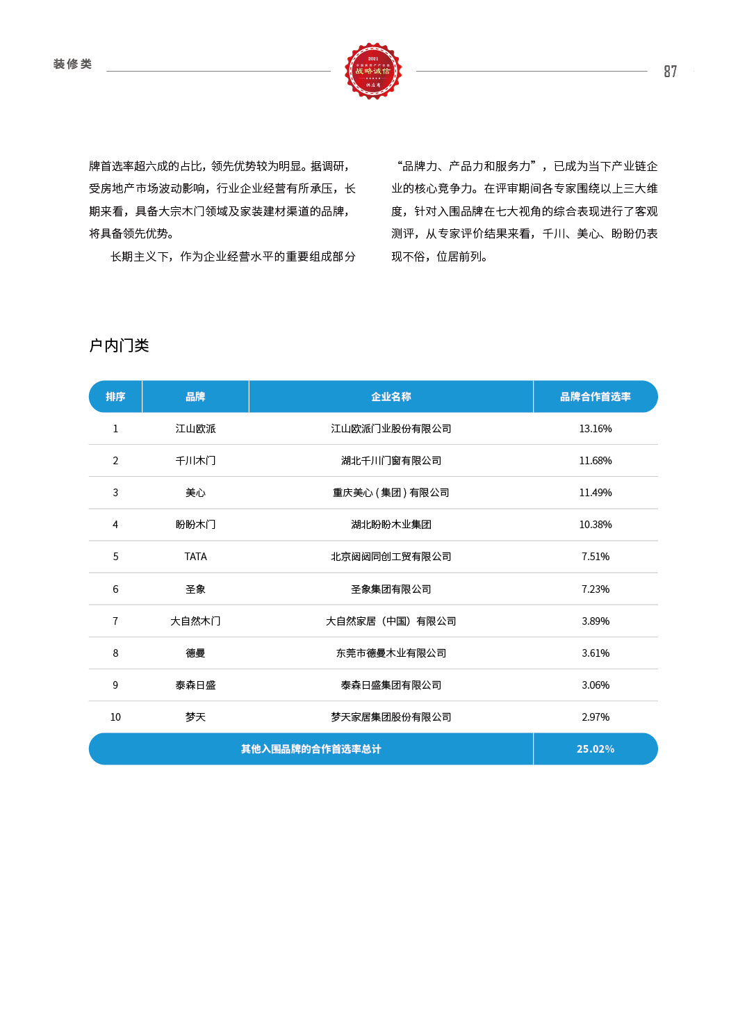 2021中国房地产产业链战略诚信供应商研究报告