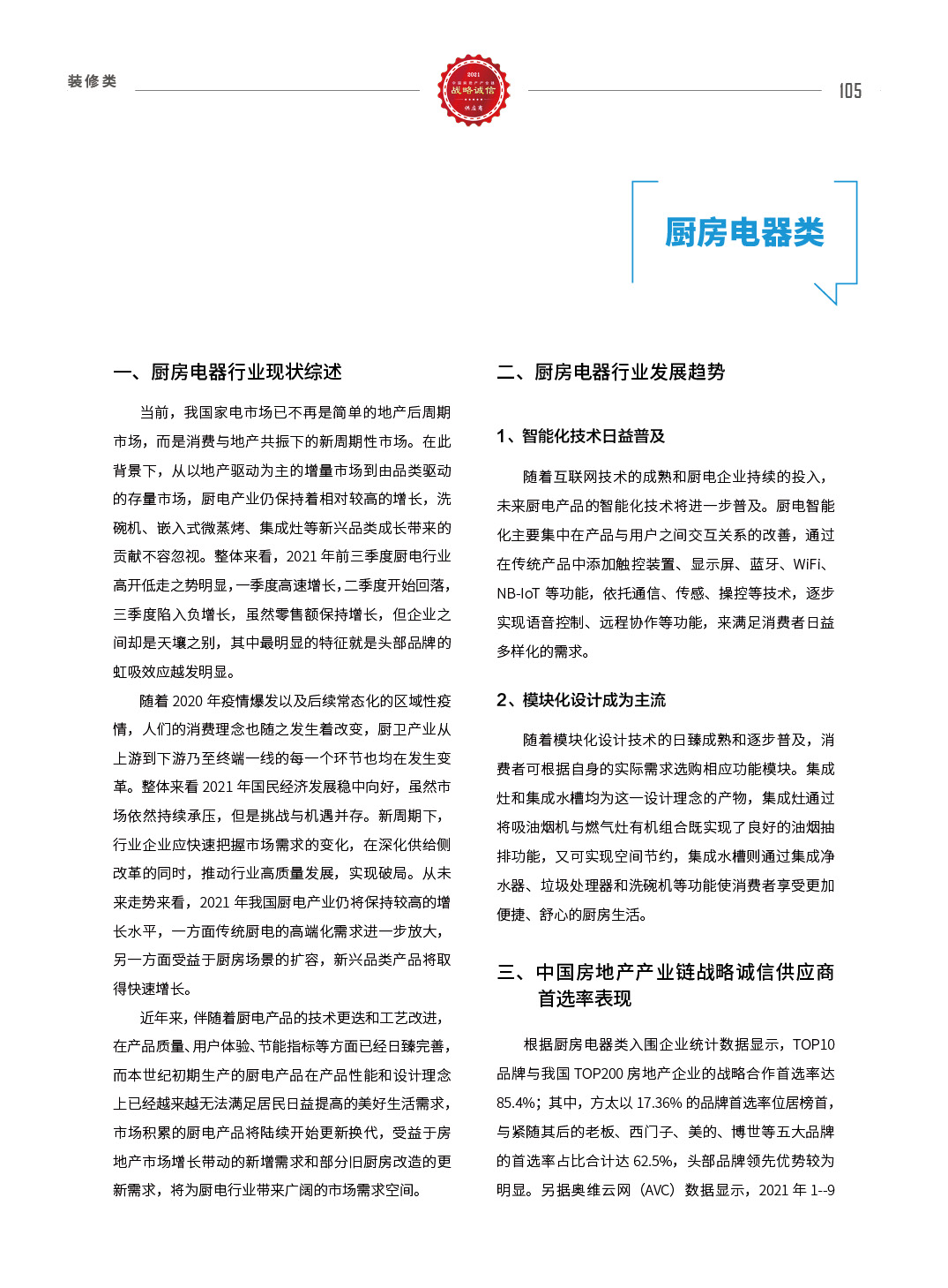 2021中国房地产产业链战略诚信供应商研究报告