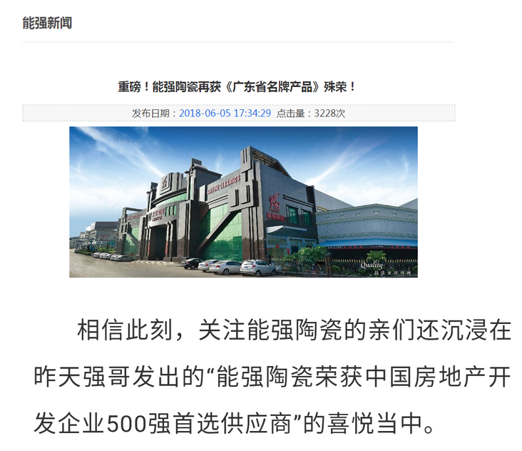 能强陶瓷再获《广东省名牌产品》殊荣【详情】