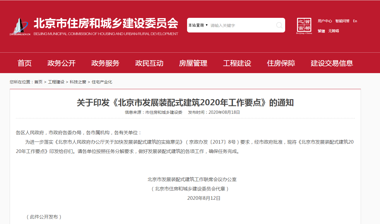 关于印发《北京市发展装配式建筑2020年工作要点》的通知【详情】