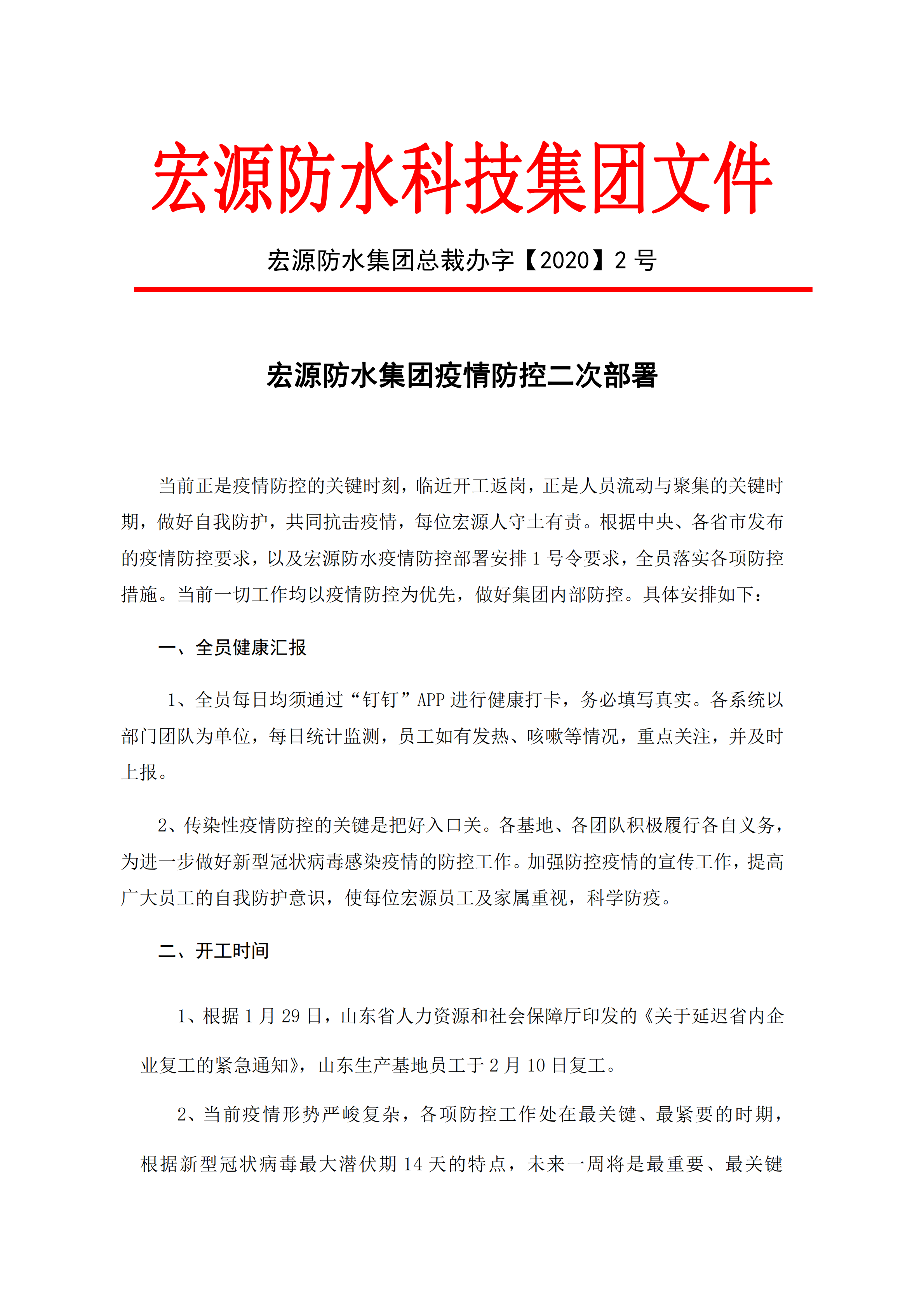 宏源防水配将疫情防控放在首位,以“零感染”为目标,上下一心保障各项工作高效进行,努力打好这一企业经济发展加速战,以实业经济切为防疫工贡献力量。