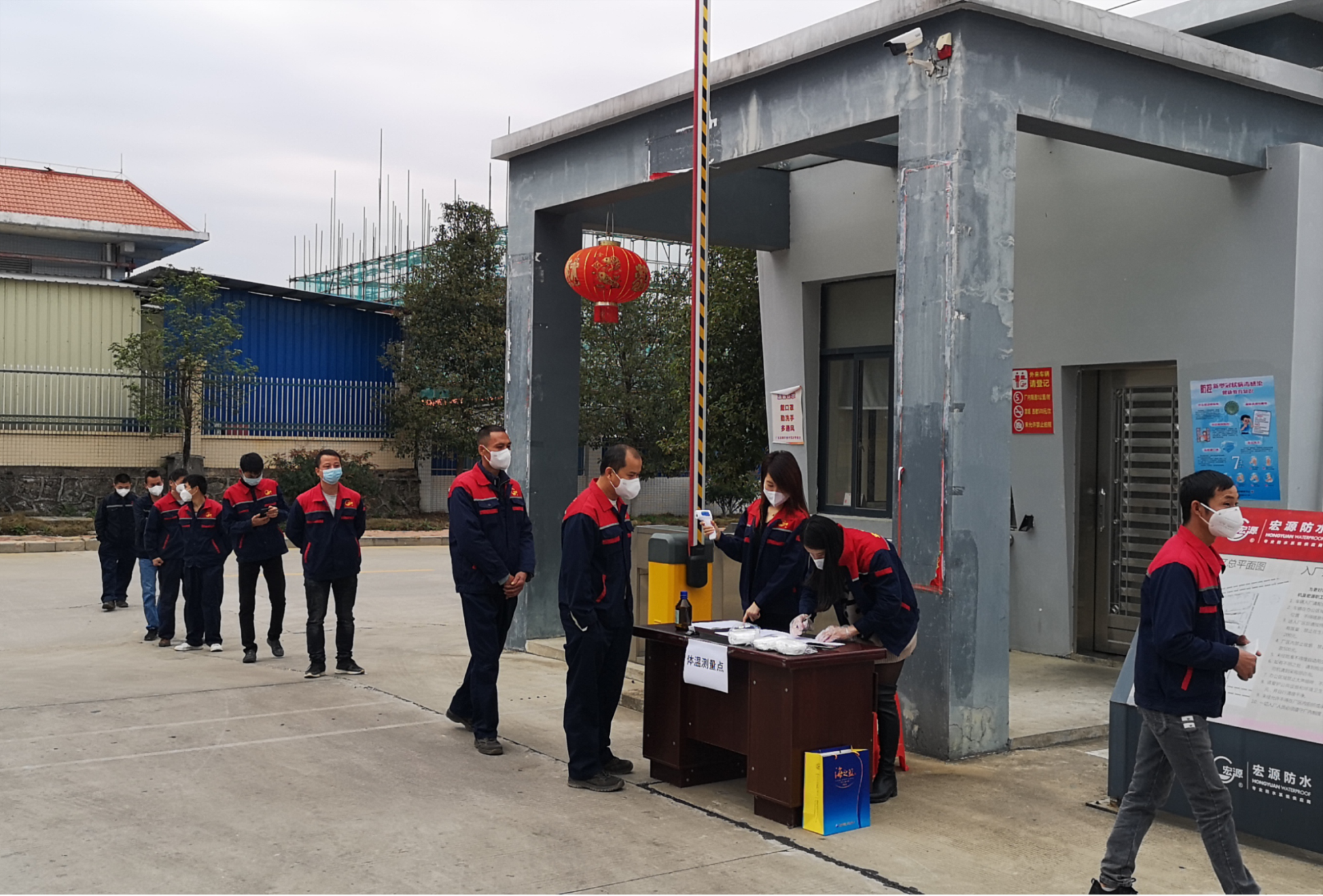 在抓好疫情防控阻击战的同时,宏源防水各生产基地严格依据政府抗疫复工的政策要求,高效完成了防疫管理和安环检查等复工准备工作。对返岗职工实行健康状况“一人一档”管理及隔离观察;各单位每日按时按点对复工场所实行全面消杀;根据实际情况安排发餐或分批就餐;严格岗位防疫,严把进出管控、体温检测与消毒。同时,持续开展疫情防控知识培训,严格落实员工健康监测,加强个人防护,以人为本,竭力保障员工生活、工作的便捷安全。