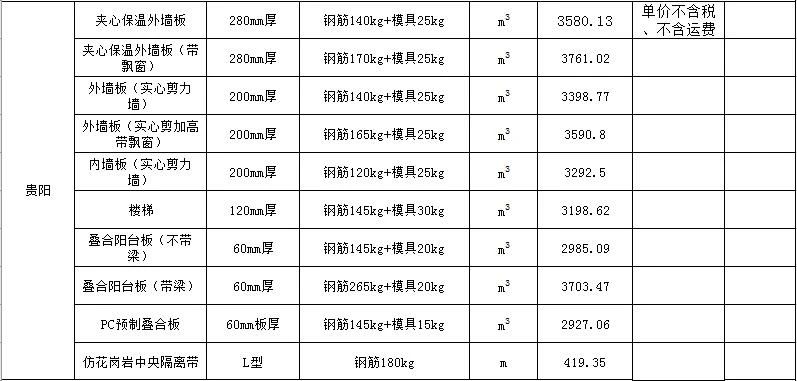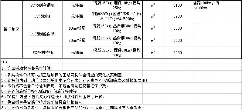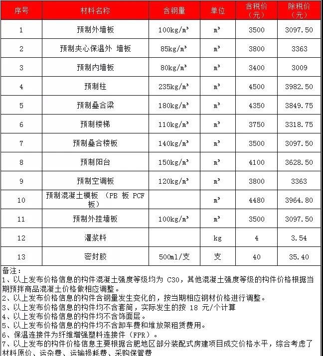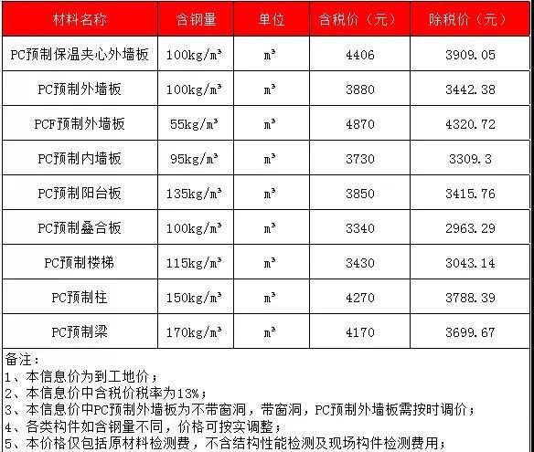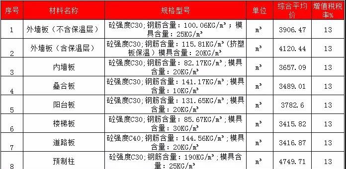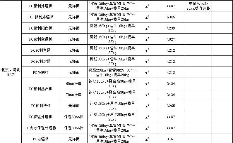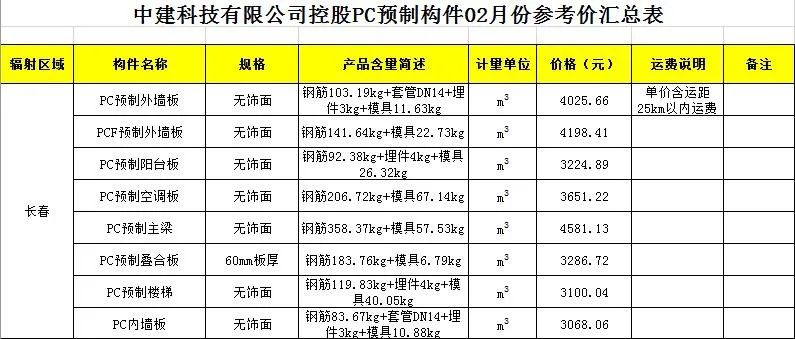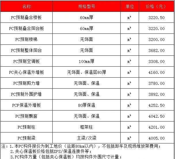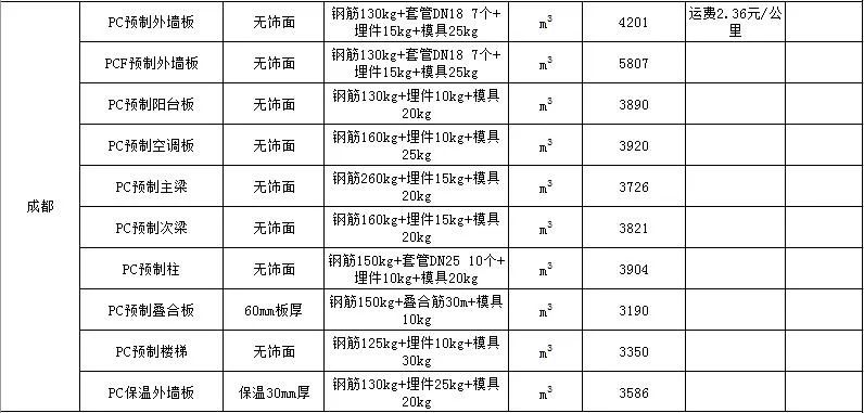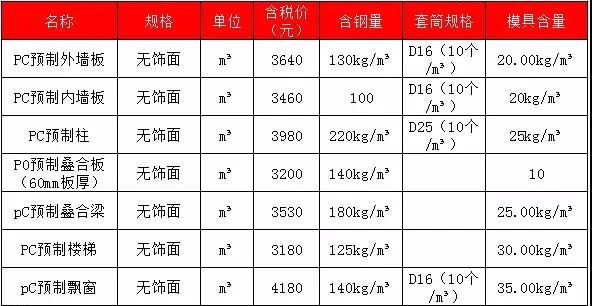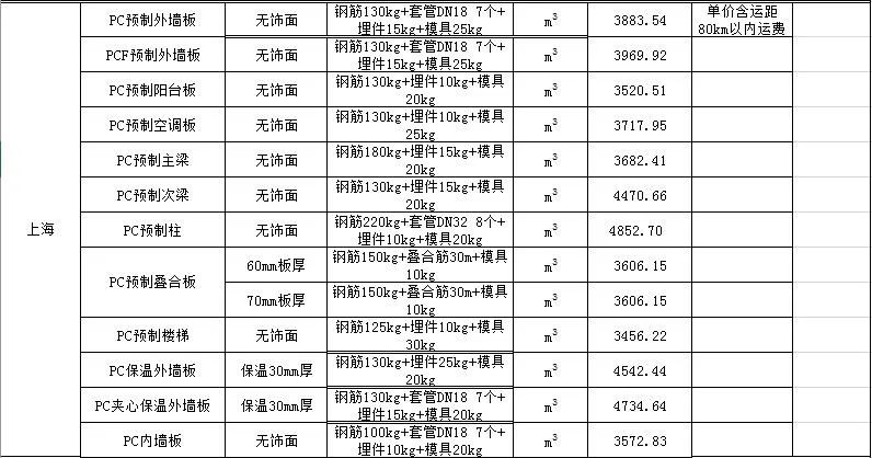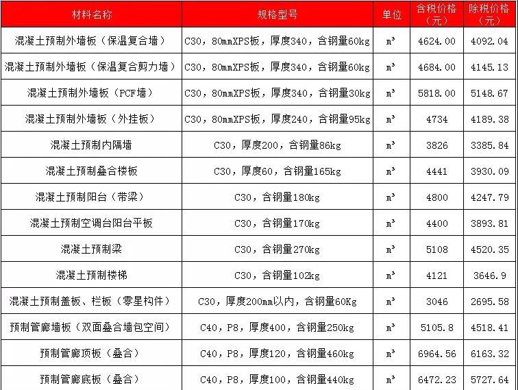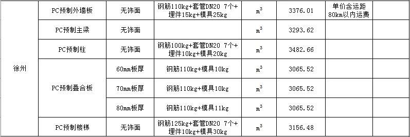 2020年2月安徽PC预制构件价格信息