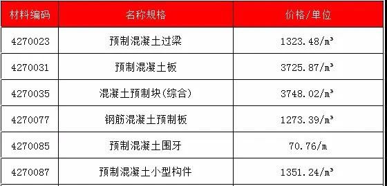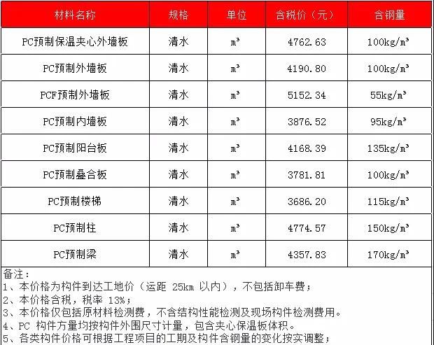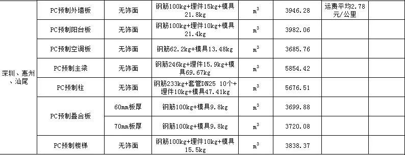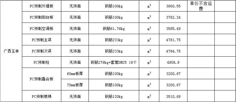 2020年2月广西PC预制构件价格信息