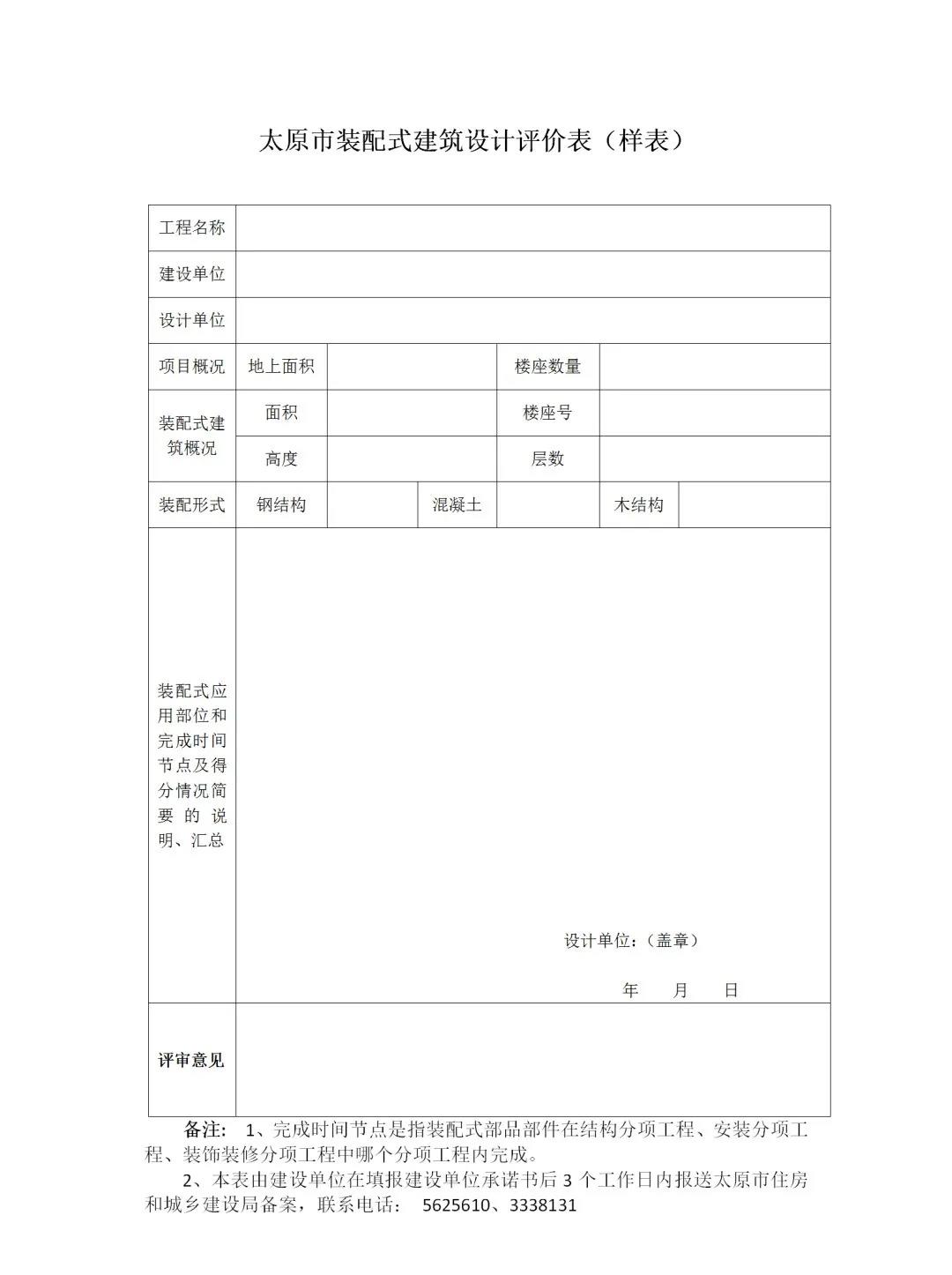 太原市装配式建筑设计评价表