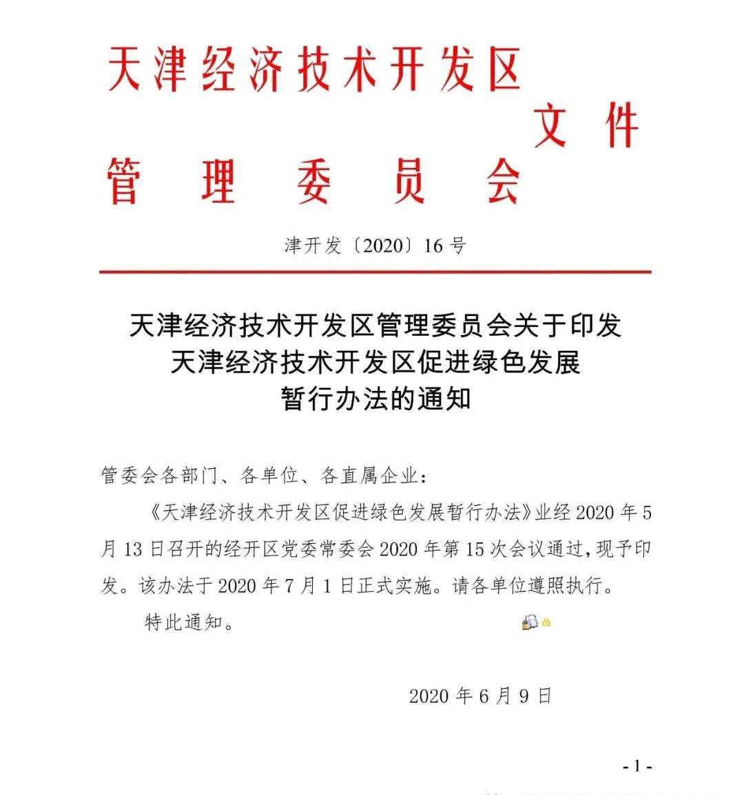 天津经济技术开发区促进绿色发展暂行办法
