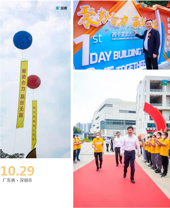 2021年10月29日,西卡蓝盾首日典礼在广东省深圳市广东蓝盾之星科技有限公司举行。西卡高层领导、员工代表以及蓝盾高层领导及全体员工欢聚一堂,共同见证这一盛事。