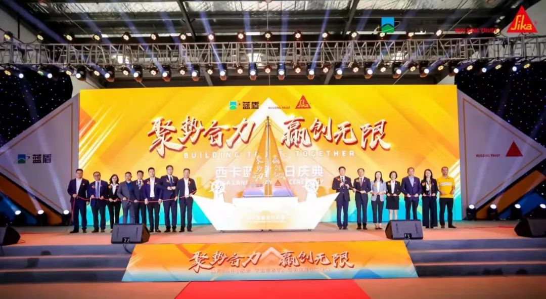 首日官宣仪式在15位特邀嘉宾的扬帆起航中达到高潮,在倒计时中,承载着西卡蓝盾融合发展伟大愿景的风帆缓缓升起至最高处,象征着并购成功。全场掌声如雷,共同见证西卡蓝盾的诞生!西卡蓝盾将聚势合力,乘风破浪,向着未来更加远大的目标出发。