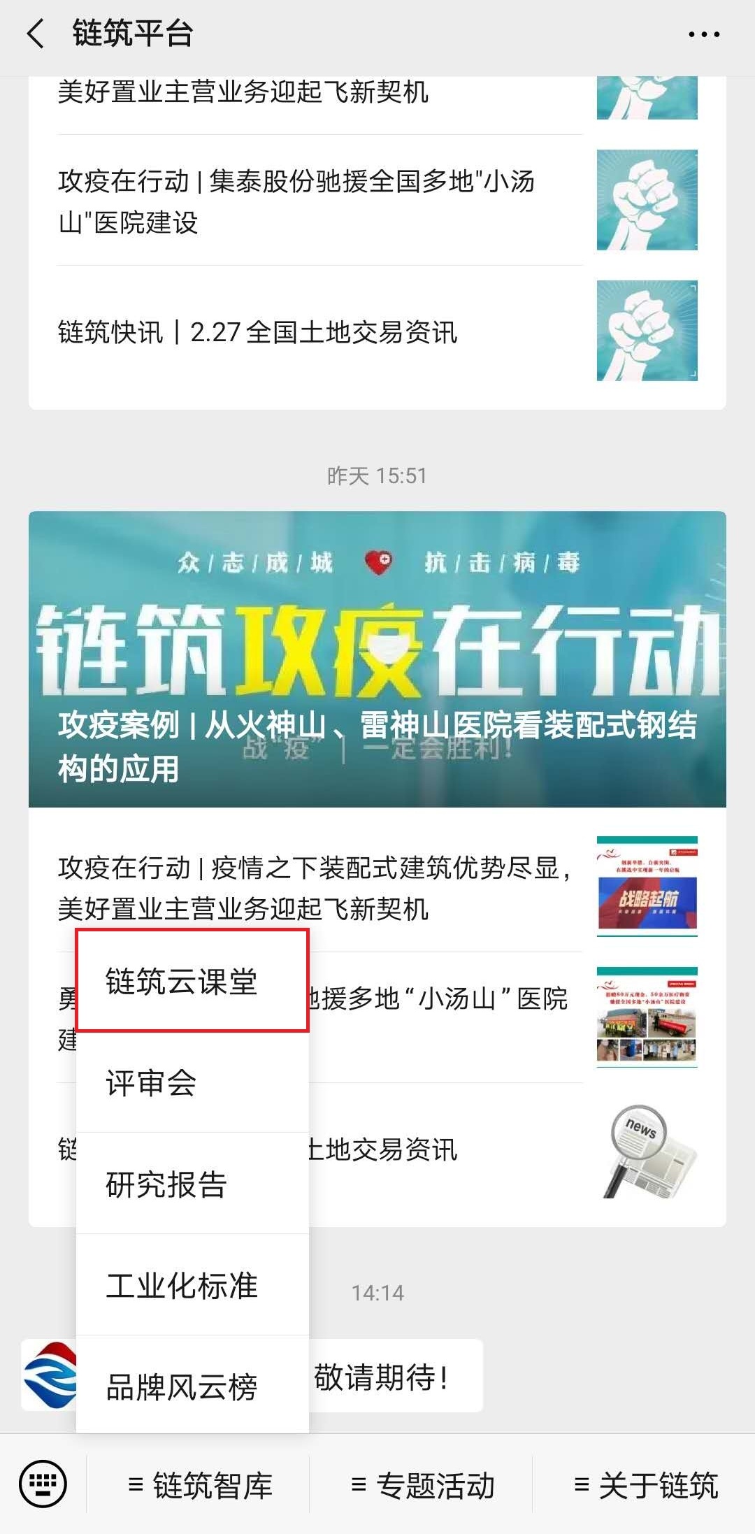 从菜单栏找到“链筑云课堂”频道