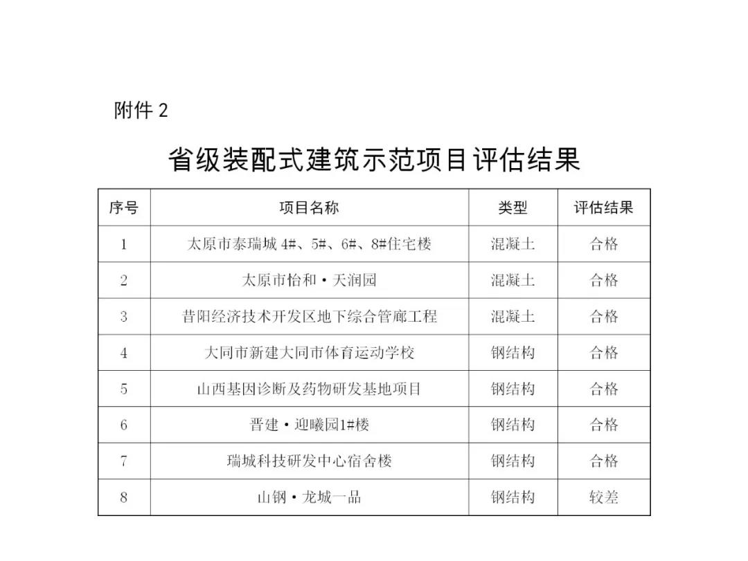 山西省住房和城乡建设厅关于公布装配式建筑工作推进情况及省级装配式建筑产业基地、示范项目实施情况的通知