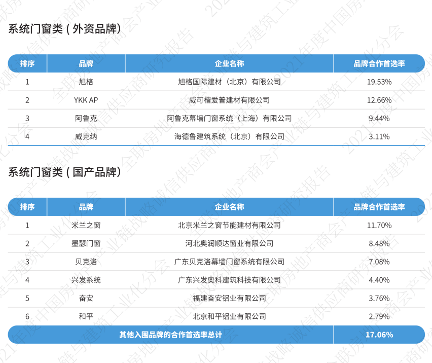 2017-2021中国房地产产业链战略诚信供应商——系统门窗首选率变化趋势