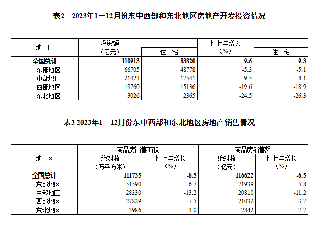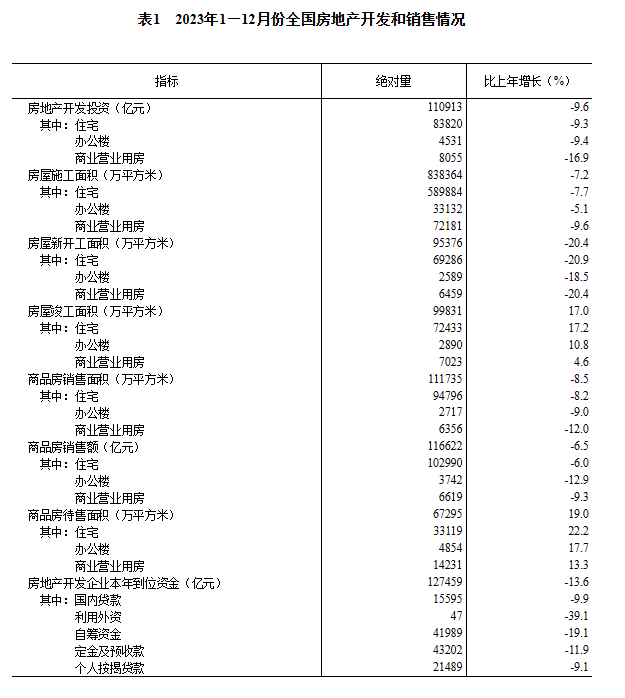 另一个“积极变化”则体现在房地产投资、销售等指标降幅收窄。康义表示,2023年,房地产开发投资比上年下降9.6%,降幅比上年收窄0.4个百分点。房地产开发企业到位资金下降13.6%,降幅比上年收窄12.3个百分点。商品房销售降幅也明显收窄。