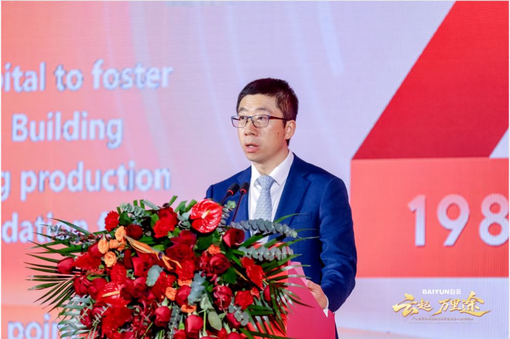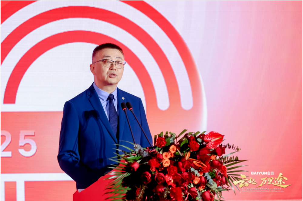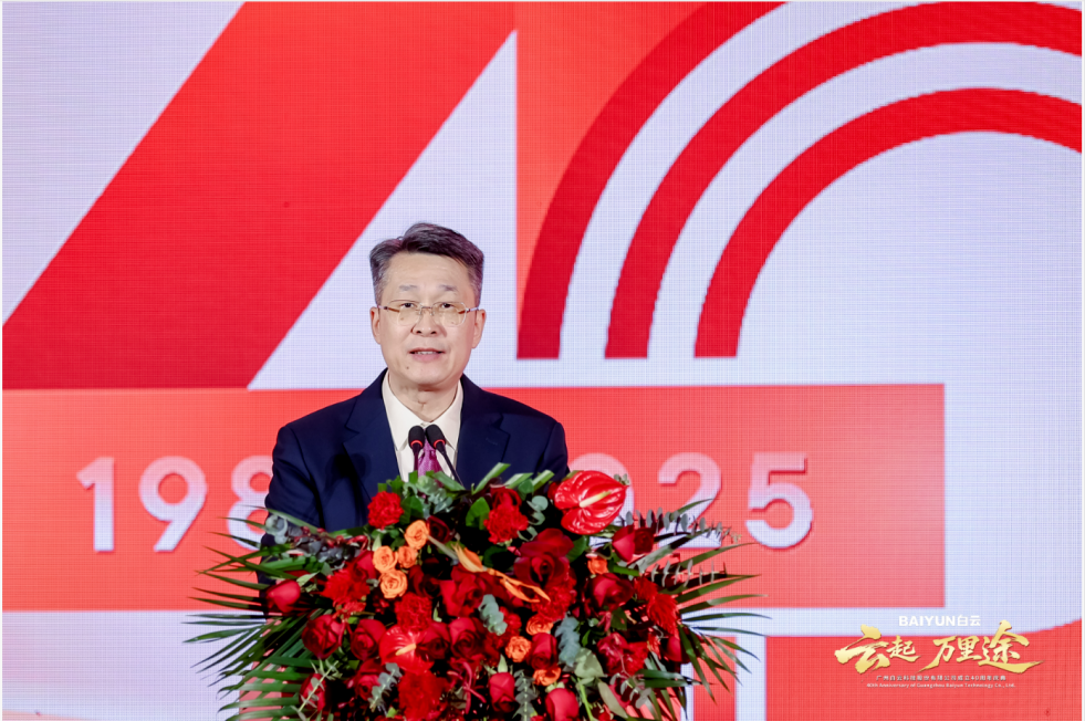 2025年11月28日,以“云起 万里途”为主题的广州白云科技股份有限公司(以下简称“白云科技”)成立四十周年庆典,在广州白云国际会议中心越秀万豪酒店隆重举行。政府领导及行业协会领导、全球材料及幕墙门窗领域资深专家、核心客户、上下游合作伙伴及经销商等500余位海内外嘉宾齐聚一堂,共赴这场跨越四十载的荣耀之约,共同见证白云科技发展史上的重要里程碑,共话未来新篇!郑洪伟:广州市城市建设投资集团有限公司党委书记、董事长张 雨:中国化学与物理电源行业协会动力电池应用分会秘书长庆典在庄重而热烈的氛围中拉开帷幕。白云科技董事长吴浩中先生上台致辞,向四十年来始终信任与支持白云科技的各位领导、合作伙伴与朋友们,表达了最诚挚的感谢。他表示,过去的四十年仅是一个序章,白云科技将以此次庆典为新起点,与各位伙伴并肩同行,共同为行业进步与美好生活赋能。中国化学与物理电源协会动力电池应用分会秘书长张雨女士致辞。她高度肯定了白云科技四十年深耕所取得的成就,特别指出,公司在高性能密封材料领域的创新突破,为动力电池的安全与性能提升作出了关键贡献。张秘书长还分享了动力电池领域的广阔前景,并期待白云科技未来能进一步深化与电池企业、整车企业的协同创新,为构建更安全、更绿色、更高效的新能源汽车产业链提供更强支撑。中国氟硅有机材料工业协会秘书长张建军先生随后发表致辞。他高度赞许了白云科技四十年来作为行业标杆,对开创与推动中国有机硅密封胶产业发展所做出的卓越贡献。站在新材料产业发展的新阶段,他期盼白云科技未来能继续勇攀科技高峰,紧密贴合市场需求,并与协会携手,共同谱写中国氟硅材料工业高质量发展的崭新篇章。全联房地产商会党委副书记、秘书长赵正挺先生在致辞中,从当前社会关注的“好房子”热点议题切入,强调了高性能密封胶在建筑品质与安全中的关键作用。他特别赞杨了白云科技将“小材料”做到极致的工匠精神,并指出,正是这种专注与创新,为“好房子”建设注入了坚实可靠的“白云力量”。中国建筑金属结构协会会长曲琦先生在讲话中,高度评价了白云科技四十年来在多个领域所做出的卓越贡献,并对其未来发展寄予厚望。他期待白云科技继续秉承“标准之尺、责任之心、绿色之笔”,以更高标准书写高质量发展新篇章,引领行业走向更安全、更绿色、更具竞争力的未来。广州市城市建设投资集团有限公司党委书记、董事长郑洪伟最后,广州市城市建设投资集团有限公司党委书记、董事长郑洪伟先生压轴登场,发表致辞。作为白云科技的大股东,广州城投集团不仅是其发展道路上的指引者,更是坚定的支持者。展望 “十五五”,广州城投集团将倾力依托自身强大的产业体系和多元的金融服务,为白云科技描绘崭新蓝图,拓展新兴赛道,布局前沿产业,培育强劲的新增长极,助力企业实现更高质量、更可持续的发展。。紧随其后,在现场所有人的共同见证下,嘉宾们共同按下象征辉煌与未来的启动键,这一充满仪式感的动作,不仅点亮了白云科技过去四十年的里程碑,更照亮了其迈向未来的新征程,宣告一段崭新的发展历程正式起航。回望四十年,每一段岁月都因奋斗而闪耀光芒,每一个足迹都因初心而沉淀力量。这段"勋程",始于破局开路的勇气,成于恪守标准的担当,终于向上攀登的坚韧。它让我们深刻地理解"溯源"的意义--唯有深知来路之艰辛,方能明辨前程之方向。舞台剧《微光终成炬火》将现场观众带回到创业初年的峥嵘岁月。剧中再现了白云人从点滴起步、聚沙成塔的创业历程,一幕幕感人场景,不仅勾勒出白云人艰苦奋斗、敢为人先的精神风貌,更让“不忘初心、方得始终”的精神内核,在岁月回望中熠熠生辉。在回顾历史的同时,白云科技更以“云擎锐势”之姿,响亮回应时代召唤,彰显面向未来的信心与坚定。何为“擎锐”?是高擎创新之旗帜,是凝聚奋进之伟力,更是为品牌注入蓬勃的青春动能。庆典上,白云科技向全球正式发布了全新IP形象——“蜜斯特白”。其设计灵感来源于小蜜蜂,"蜜蜂"谐音"密封",巧妙呼应了我们深耕多年的密封胶主业;而蜜蜂所象征的"勤劳、专注、协作"的精神,亦生动刻画出每一位白云人的品质缩影。从今往后,"蜜斯特白"将承载着白云的技术、故事、梦想,飞越千城万邑,链接全球伙伴,奔赴更广阔的天地,让世界见证中国“白云”的力量!随后,员工舞蹈《云途万里 锦绣华章》翩然登场。舞者们以刚柔并济的肢体语言,生动诠释了白云品牌精神,其姿如云,舒卷自如,蕴含着穿越关山、行至万里的从容与坚定;其势如虹,气贯长虹,挥洒出一幅以奋斗织就的锦绣华章。我们重温了来路的艰辛与荣光,也展现了此刻的活力与锋芒。四十年,是一座里程碑,更是一条崭新的起跑线。“云启新章”,开启的是一段通往无限可能的未来征程——随后,舞蹈《启航》翩然登场,舞者们以身为帆、以意志为浆,生动诠释白云人航向未来的勇气与格局,带领全场共同驶向梦想的彼岸。随着温情而庄重的合唱《四秩白云 赋美前行》响起,白云人将对未来的坚定信念与美好期许,都融汇于激昂的声浪之中。这一刻,个人的情感与集体的意志同频共振,展现出全体白云人将继续同心致远、共赴新程的磅礴力量。晚宴伊始,员工舞蹈《光启