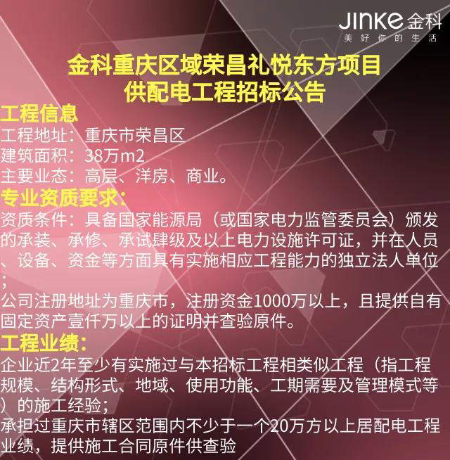 链筑网 招采信息 金科地产重庆区域荣昌礼悦东方B组团供配电工程招标公告