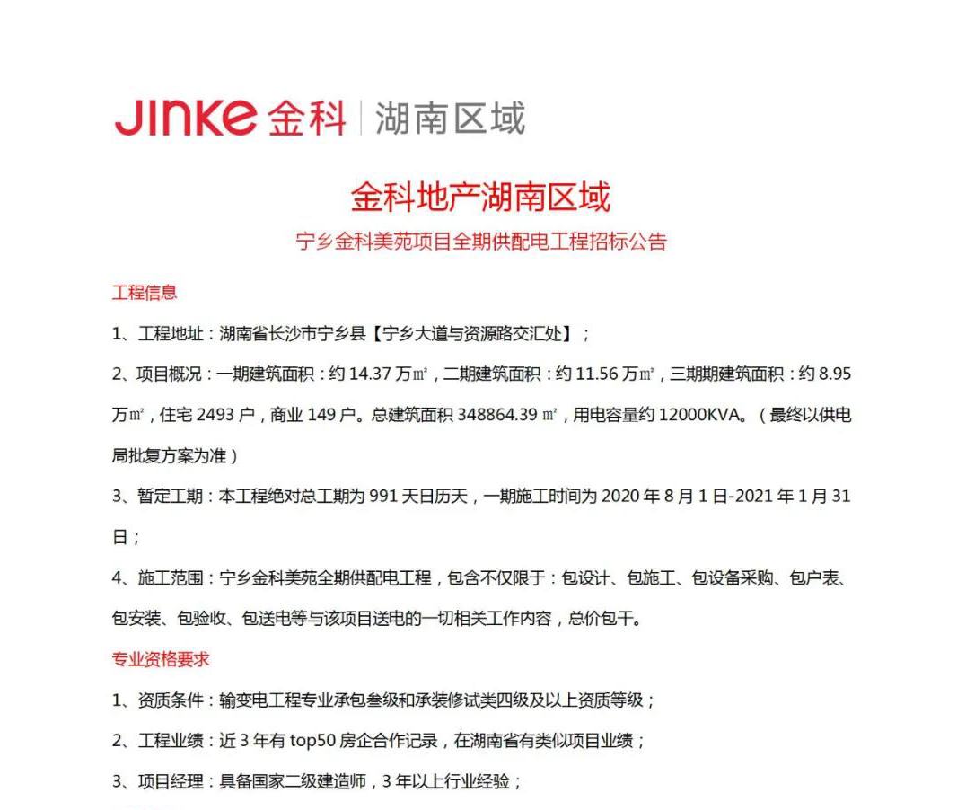 金科中原2020-2021年度第三方抢工及维保战略招标公告