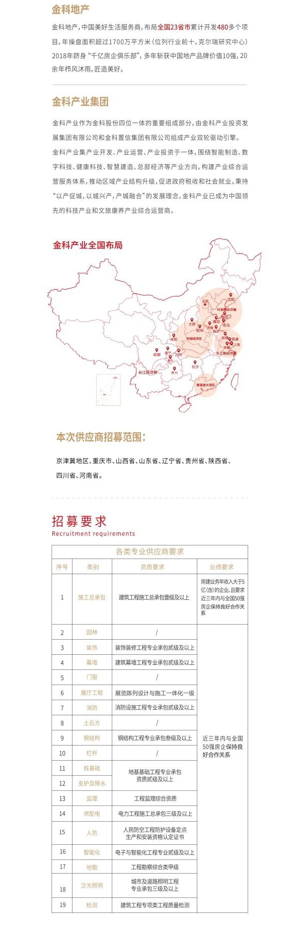 金科股份中原区域工程供应商招募