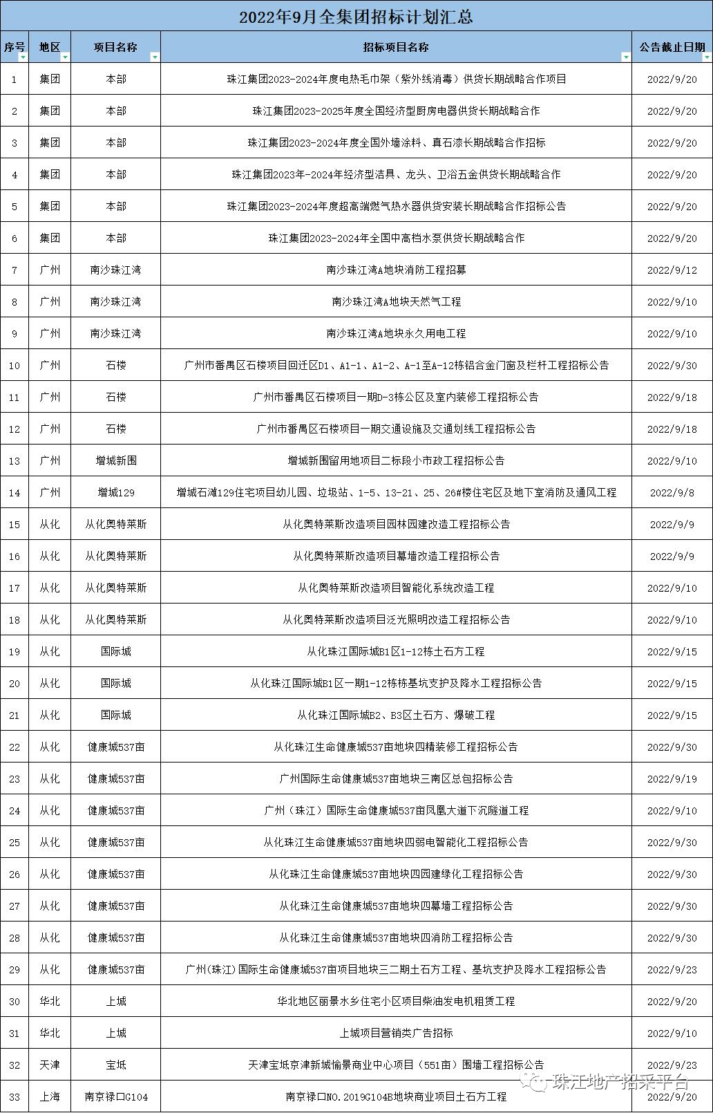 广东珠江投资股份有限公司 2022年9月份招募计划